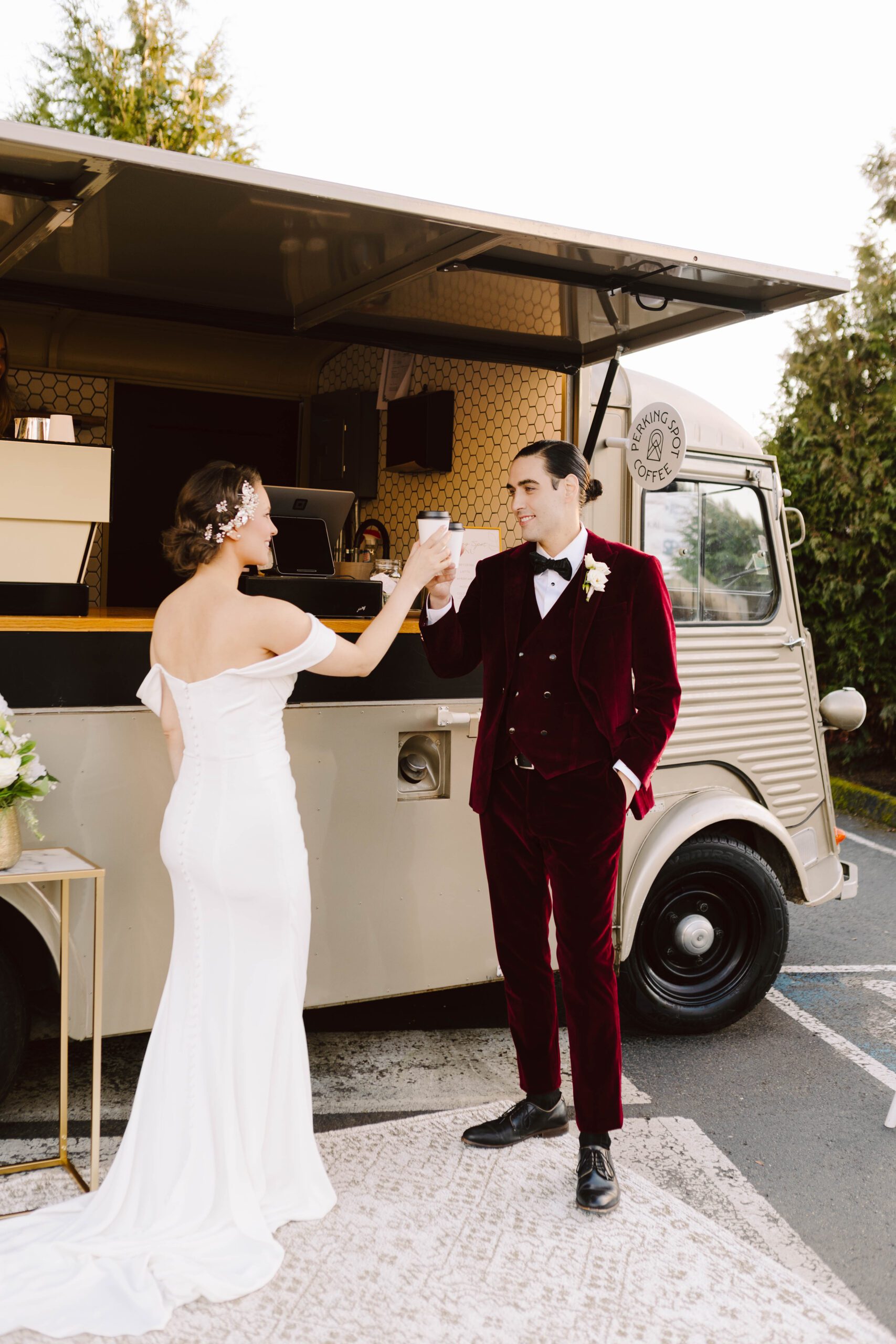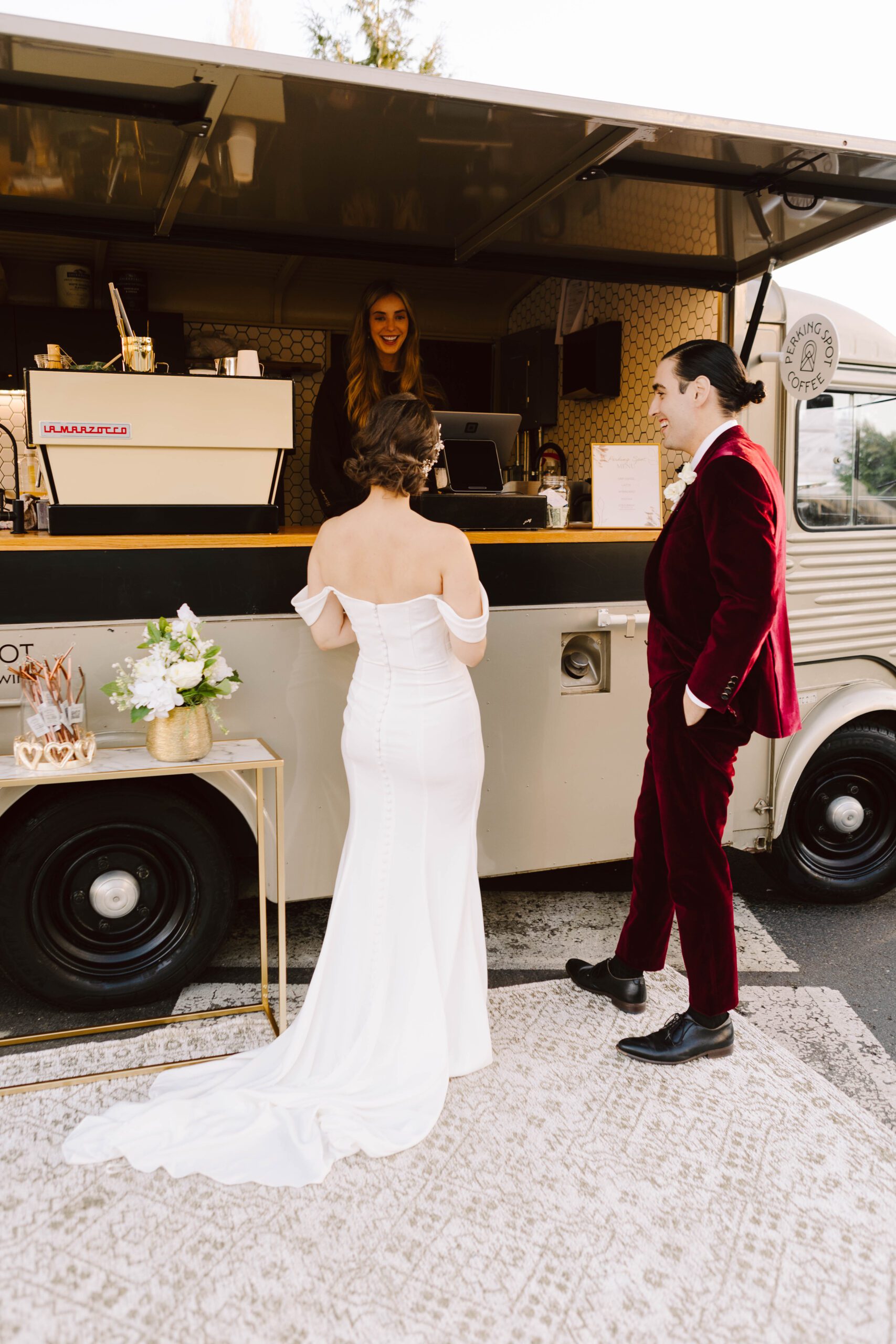 Add a touch of charm and fun to your wedding day with a vintage coffee truck! With expertly crafted coffees and specialty drinks, your loved ones can enjoy their favorite pick-me-up while mingling and making memories. Why settle for ordinary when you can have a coffee shop on wheels that is the perfect way to elevate your event, creating lasting memories and a buzz everyone will talk about.